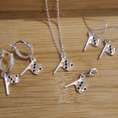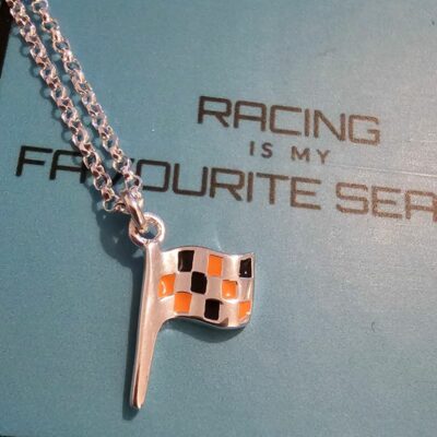 Mclaren Inspired Enamel Flag Necklace in Sterling Silver