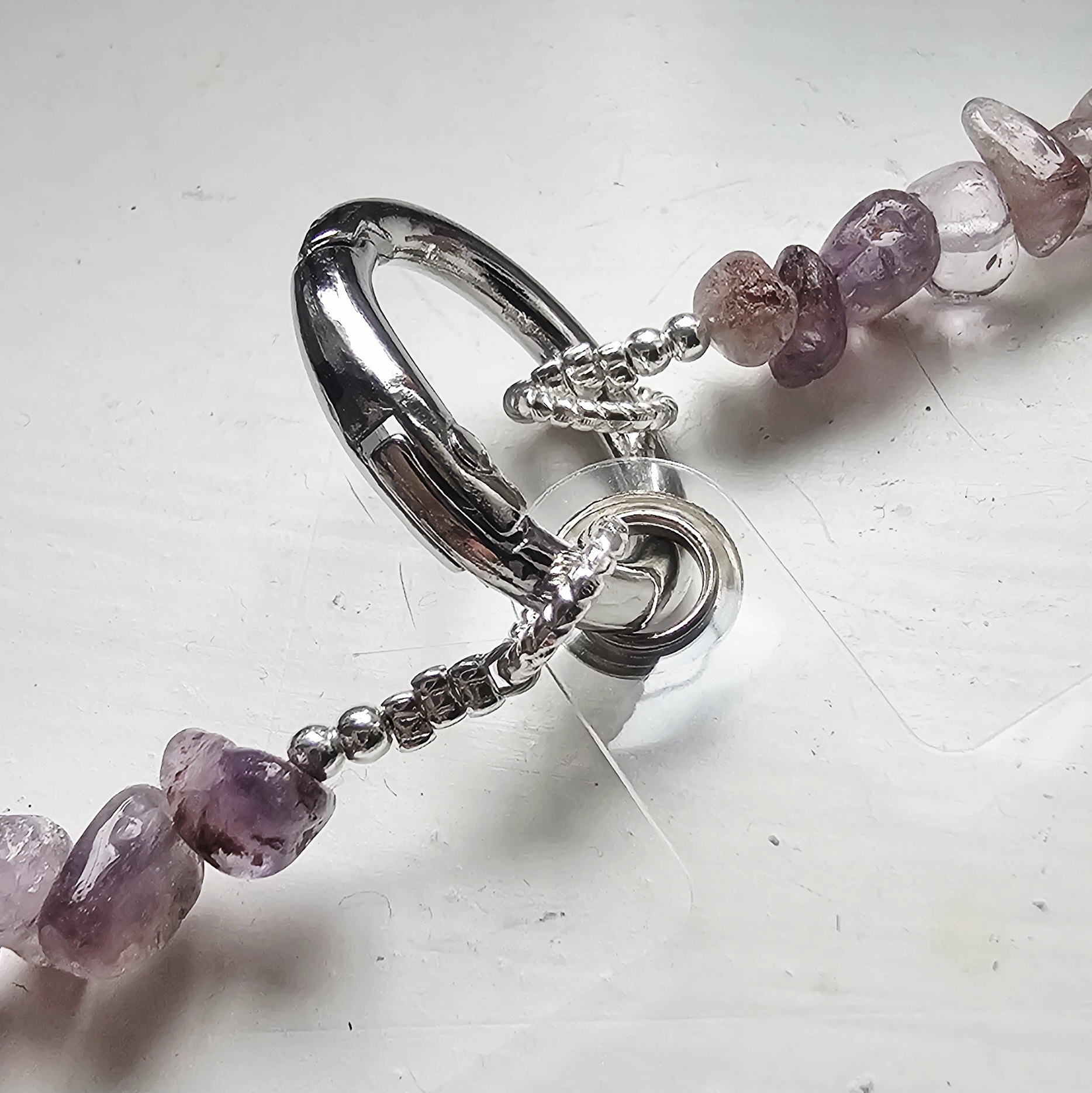 This handy gemstone phone strap is the perfect way to keep your phone close while adding a little sparkle to your day. Each strap includes a clear attachment plate designed to fit securely inside almost any phone case. Simply unclip the strap, place the clear plate inside your case with the tab sitting in the charging port opening, then pop your case back on. Your gemstone strap then clips neatly onto the exposed tab, keeping everything secure and ready to use. Made using a beautiful blend of amethyst and citrine chips, this piece brings together calm, clarity and uplifting energy. Amethyst is known for soothing the mind, easing stress and encouraging balance, while citrine is associated with joy, confidence and a warm burst of positivity.