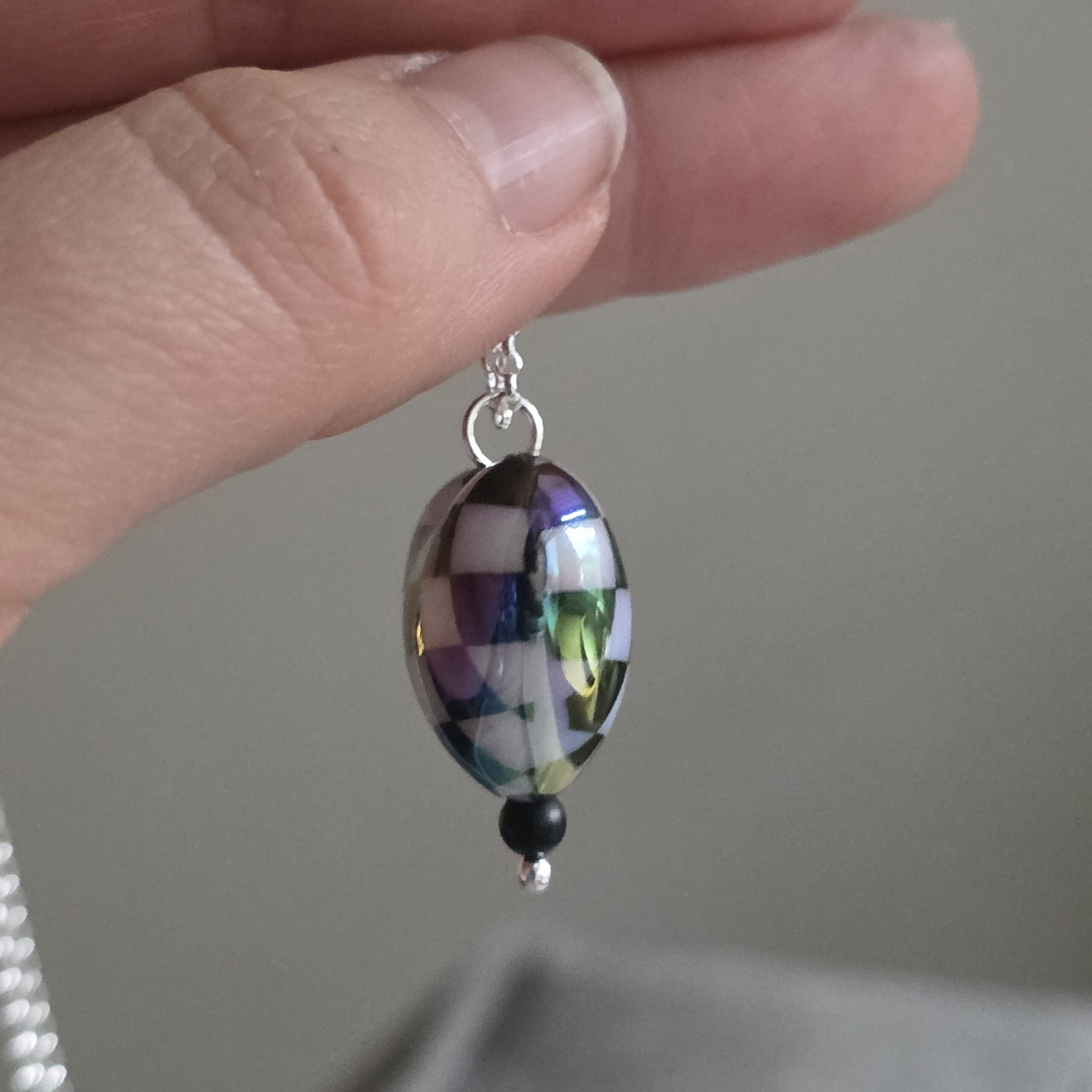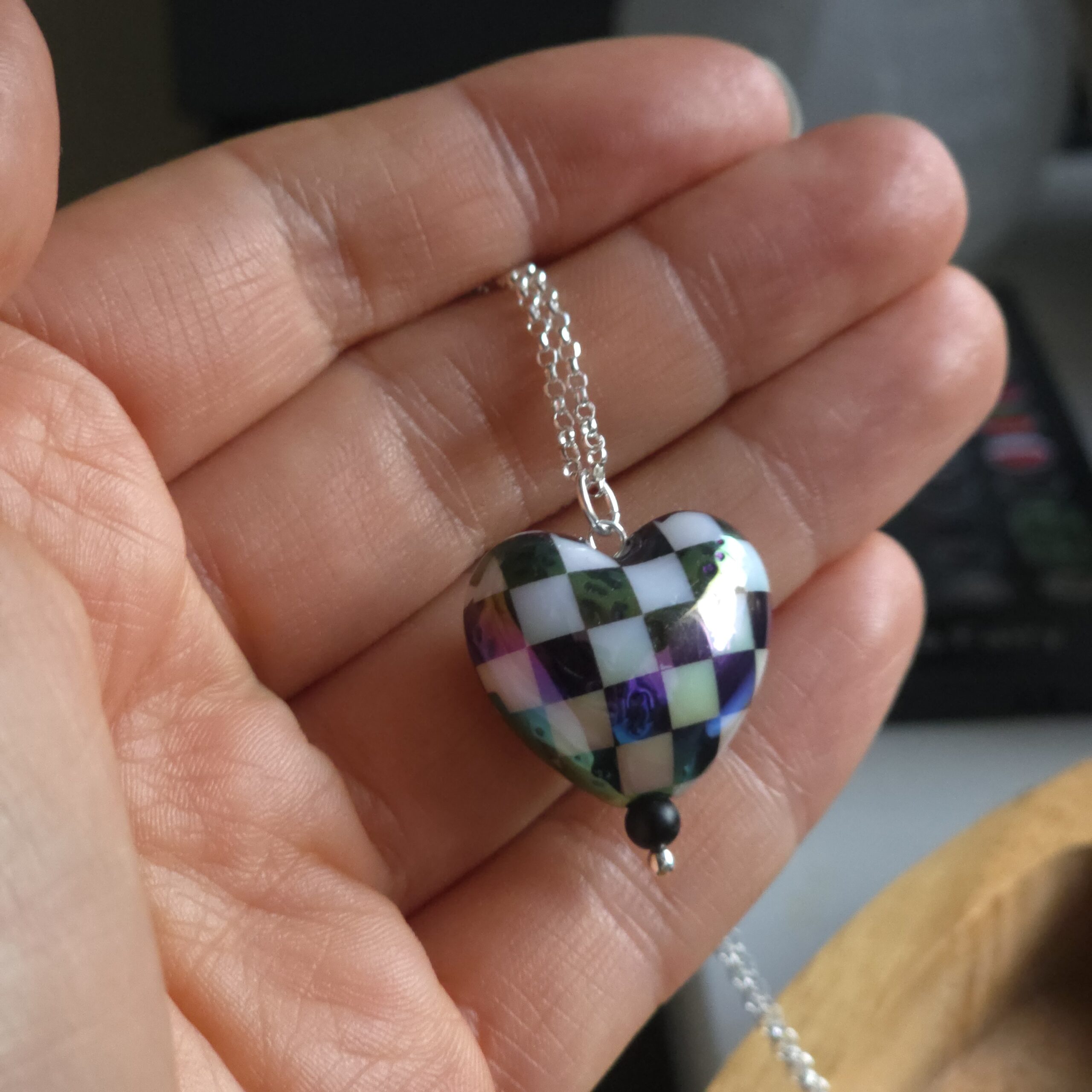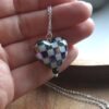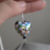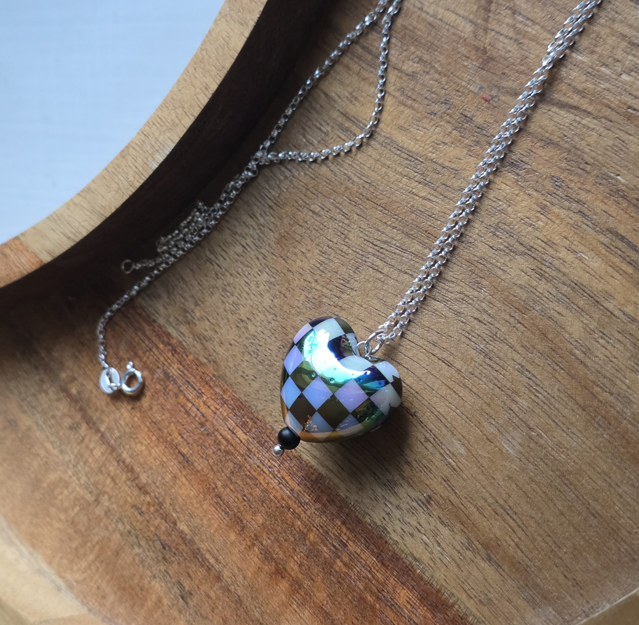 Aurora Borealis Chequered Puffed Heart Necklace in Sterling Silver