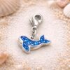 A tiny ocean treasure, this beautifully detailed blue whale charm captures the calm strength and quiet majesty of one of the sea’s most iconic creatures. Crafted in sterling silver and set with sparkling blue stones, each facet catches the light like sunlight dancing across the surface of the ocean. Measuring approximately 1.1cm in size, this miniature design is small yet full of presence, making it a perfect everyday piece with a subtle shimmer and meaning behind it. Designed with versatility in mind, the charm suspends from a standard trigger clasp, allowing you to easily attach it to bracelets, necklaces or keyrings. For those who love to personalise their jewellery, it is also available (for an additional charge) with a Pandora-style slider or a 6mm jump ring, so it can slide seamlessly onto your own chain.
