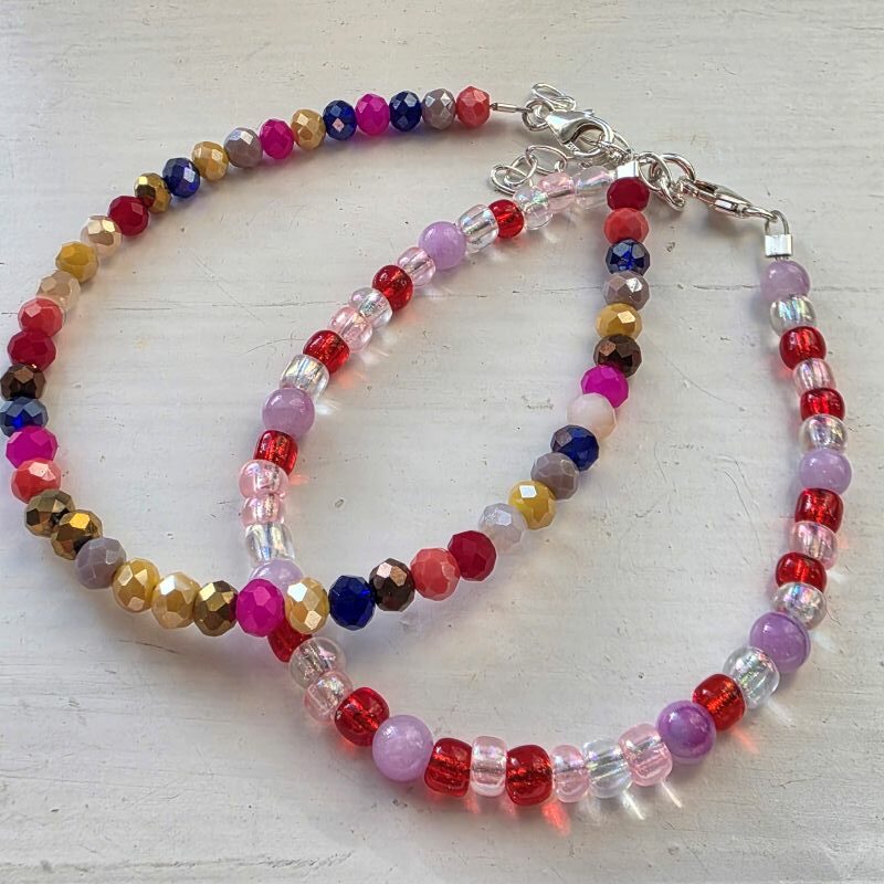 This playful bracelet is a love letter to all things cute, colourful and joyfully kitsch. Handmade using tiny candy jade in soft pinks, cherry reds and shimmering clear tones, it has a nostalgic candy-shop feel that’s perfect for Valentine’s season and beyond. Delicate yet full of personality, each bracelet is finished with a sterling silver clasp and extender chain for a comfortable, adjustable fit. No two are ever exactly the same, making each one a little wearable treat, created with love and care. Each bracelet is handmade with love and measures approximately 7–8 inches in length.