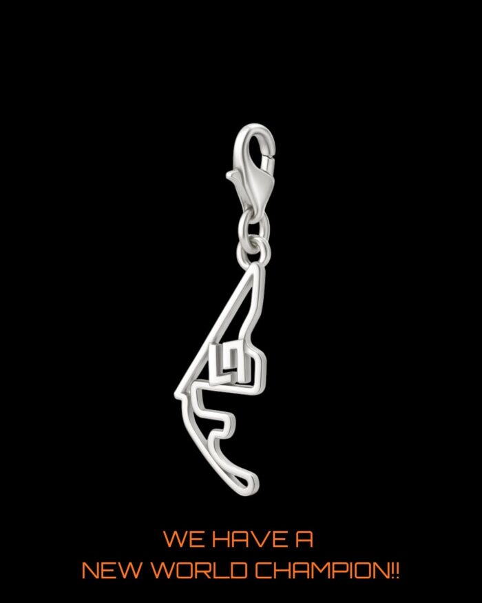 NOW AVAILABLE to celebrate a brand new world champion Formula 1 driver! So well deserved, we couldn’t be happier for the amazing Lando Norris and we hope you will love this wonderful piece we have created in his honour! A perfectly made track of Yas Marina frames Lando’s well known logo which sits proudly inside. Only 50 charms will be handmade, and each of the 50 will come with a hand written collector card letting you know which of our 50 you own. Please allow approximately 2-3 weeks for dispatch but note they WILL be delivered in time for Christmas.