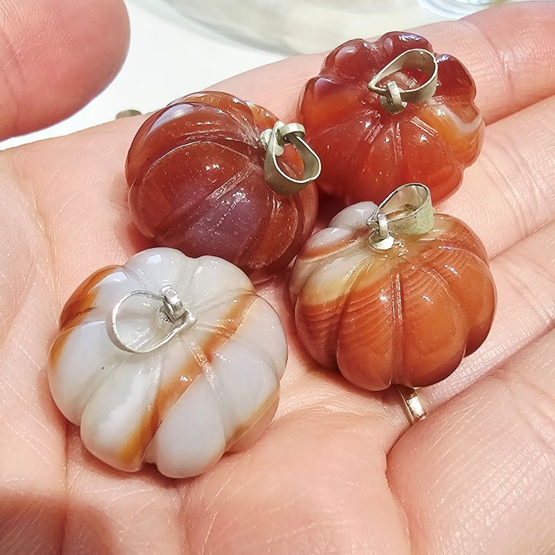 Down at the ASJ Pumpkin patch you will find the most gorgeous collection of rainbow tinted glass pumpkins and carnelian gemstone pumpkins ready to mix and match… perfect for wearing this Autumn and all those to come too!