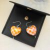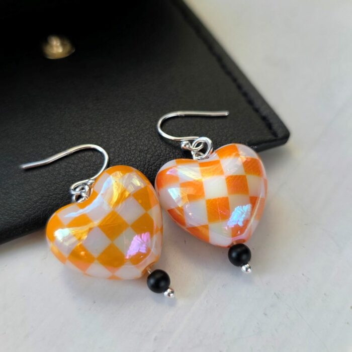 ‘For the Love of Marshals’ Orange Chequered Puffed Heart Drop Earrings in Sterling Silver – Limited Edition