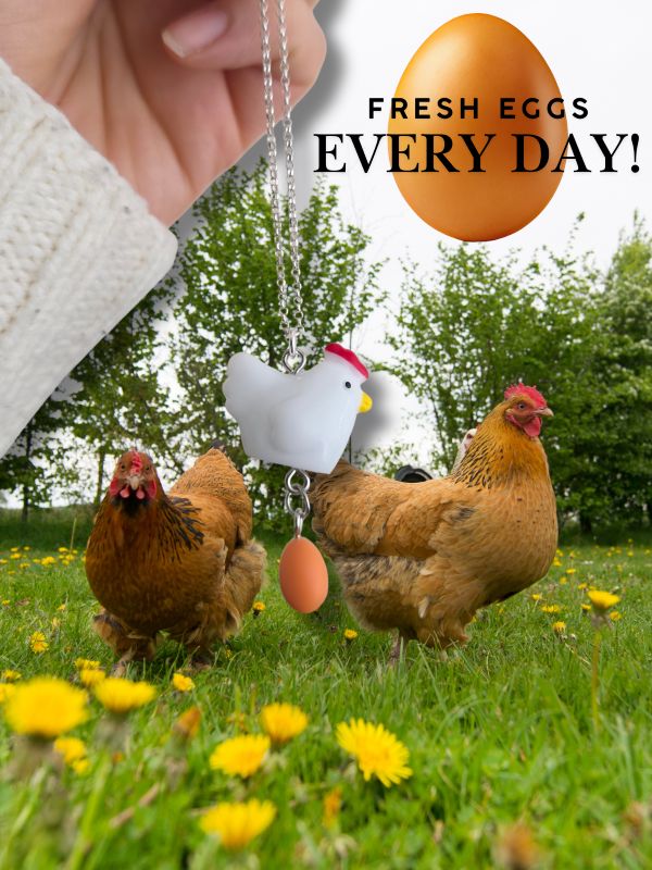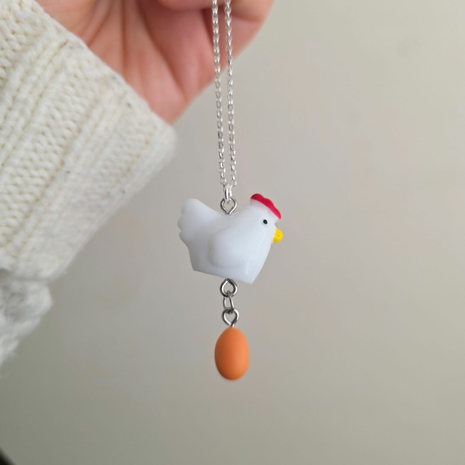 Fresh eggs every day, without the hassle of having to have chickens in your back garden when you don’t have the room, or time to look after them! We’ve worked so hard to create a chicken necklace which actually lays daily edible eggs, the first of its kind in the world in fact! Just make sure you look after your chicken and she will give you sunny side up eggs every day for the rest of time! Okay, maybe not- April fools! But she’s super cute anyway so is now available for a few days! Made in acrylic and sterling silver.