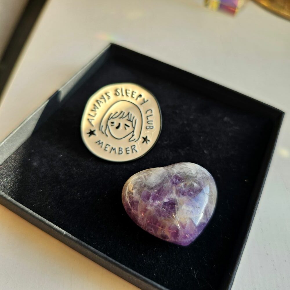 The perfect gift this Mother’s Day for the new mumma who is sleep deprived but doing their best! It features a badge of honour (oh how tongue in cheek!) and a lovely Amethyst palm heart- Amethyst is commonly used to help you sleep, relax, de-stress and unwind. The stone is perfect for sleeping with under your pillow or next to your bed to promote better sleep- because when you’re a mum, those hours you DO get to sleep are much needed!