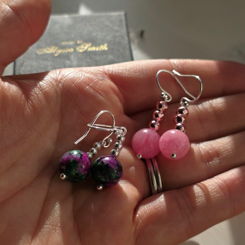 Glinda Inspired Wicked Pink Mountain Jade Gemstone Drop Earrings