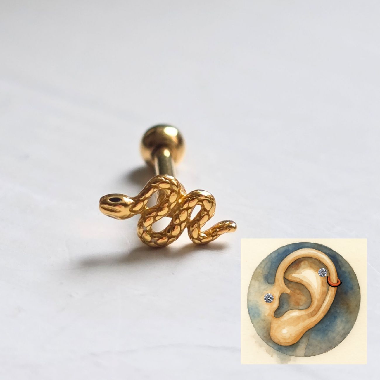 Golden Year of the Snake Helix and Tragus Stud in Sterling Silver