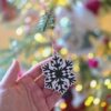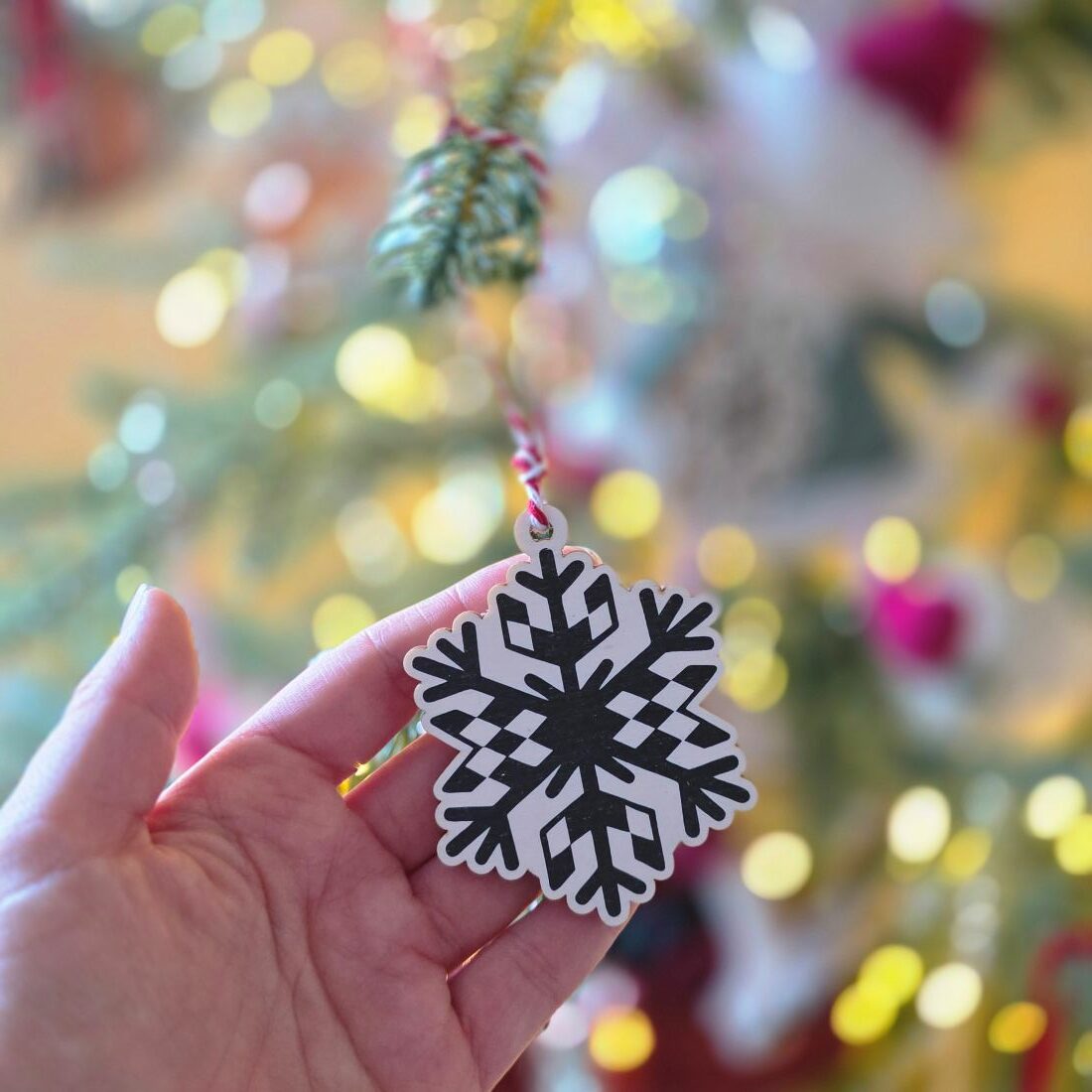 This handmade wooden Christmas decoration adds a charming, rustic feel to any tree. Crafted from natural wood and finished with a bold black snowflake design, each piece is carefully cut, painted and assembled by hand. The red and white hanging twine gives it a traditional festive touch, while the smooth matte surface keeps the design looking refined and timeless. Lightweight yet durable, it hangs beautifully on branches without weighing them down.