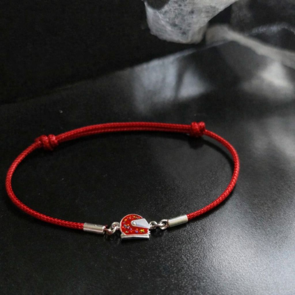 Ferrari Inspired Holographic Glitter Red Racing Helmet Red Cord Bracelet in Sterling Silver
