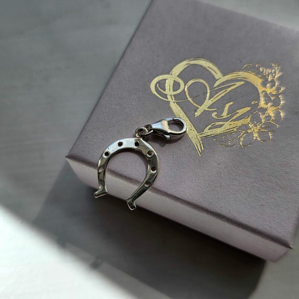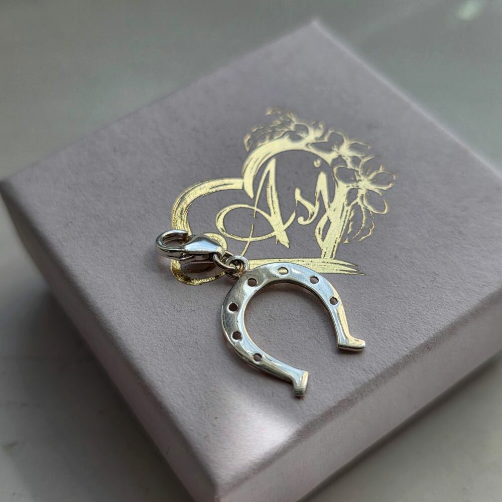 A timeless symbol of luck, love and new beginnings, this Horseshoe charm is a meaningful piece designed to be cherished. Crafted in sterling silver, the classic horseshoe design features delicate detailing, creating a simple yet elegant finish that suits both everyday wear and special occasions. Traditionally worn as a symbol of good fortune, the horseshoe is believed to bring protection and positivity to those who wear it. In weddings, it holds a special meaning — representing luck for the future, a strong foundation and a lifetime of happiness together. Whether gifted to a bride, worn on a wedding day or given as a token of love, it carries a beautiful sentiment of hope and lasting commitment. This lovely charm will suspend from a standard trigger clasp, or you can swap for a Pandora style slider or 6mm jump ring to suspend from your own chain.