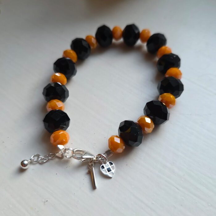 Available for 7 days only (or until all have sold out, which may be before 7 days!) — meet The amazing Lando Norris 1 inspired glass crystal bead bracelet. These stunning CHUNKY beads have been threaded onto our bracelet and finished with a sterling silver extension chain, our signature enamel heart and a sterling silver number 1 charm. Entirely handmade, this piece captures the unmistakable energy and elegance of McLaren’s iconic colours mixed with Lando’s new racing number. The lovely extension chain allows the length to adjust from 7 inches to just over 8 inches for the perfect fit.
