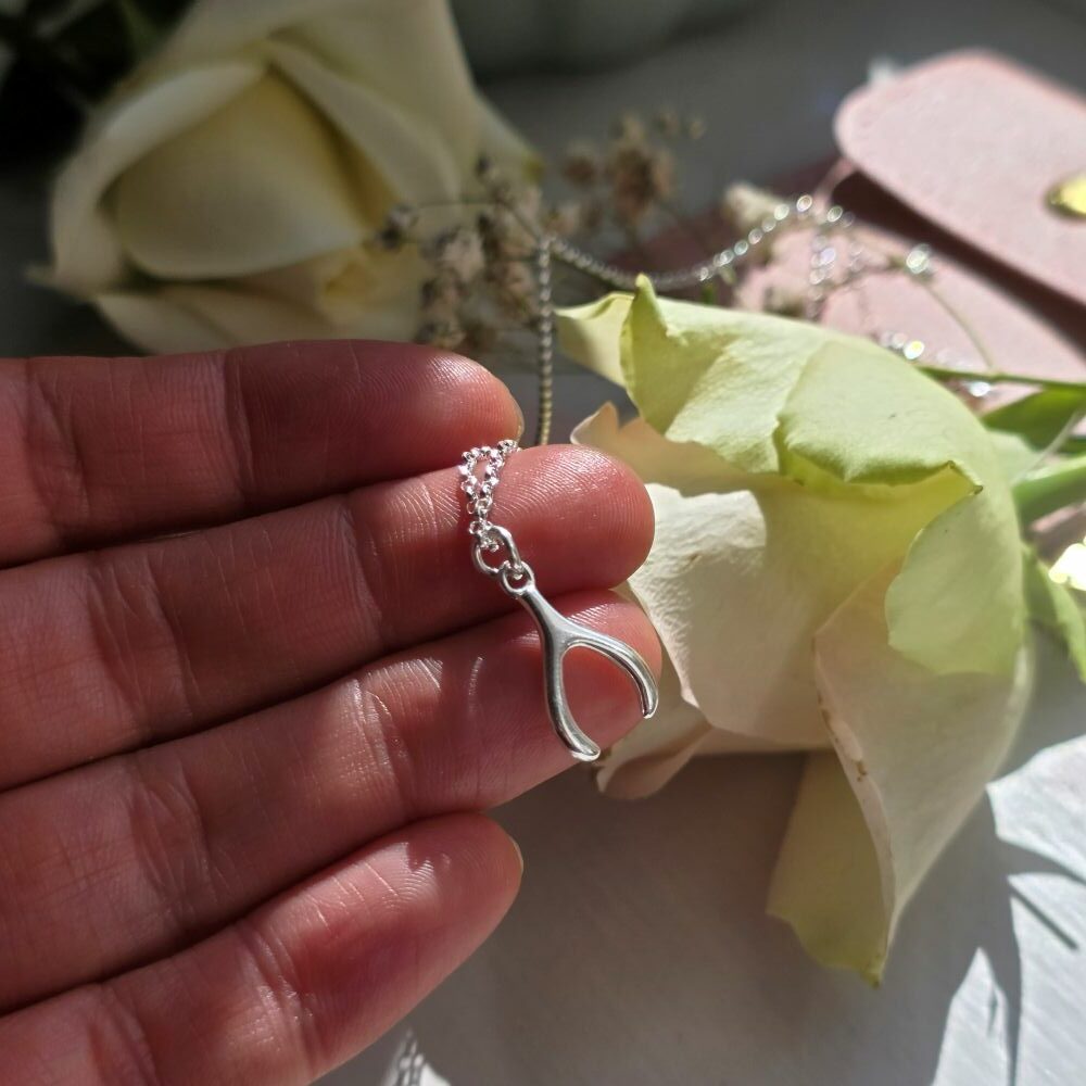 This beautiful lucky charm is a design we have always been super fond of, and has long been chosen by people all around the world for many years as a symbol of luck. This stunning little wishbone measures around 1.2cm in size and is made in solid sterling silver. We have suspended it from our best selling open link silver chain in your choice of length. If you would like to add a birthstone charm to suspend with it, that’s a great way to make it more special and personal! You could even add a lucky month such as a wedding or engagement month instead if you like!