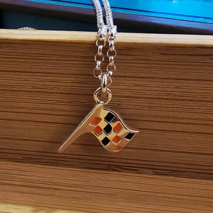 Mclaren Inspired Enamel Flag Necklace in Sterling Silver