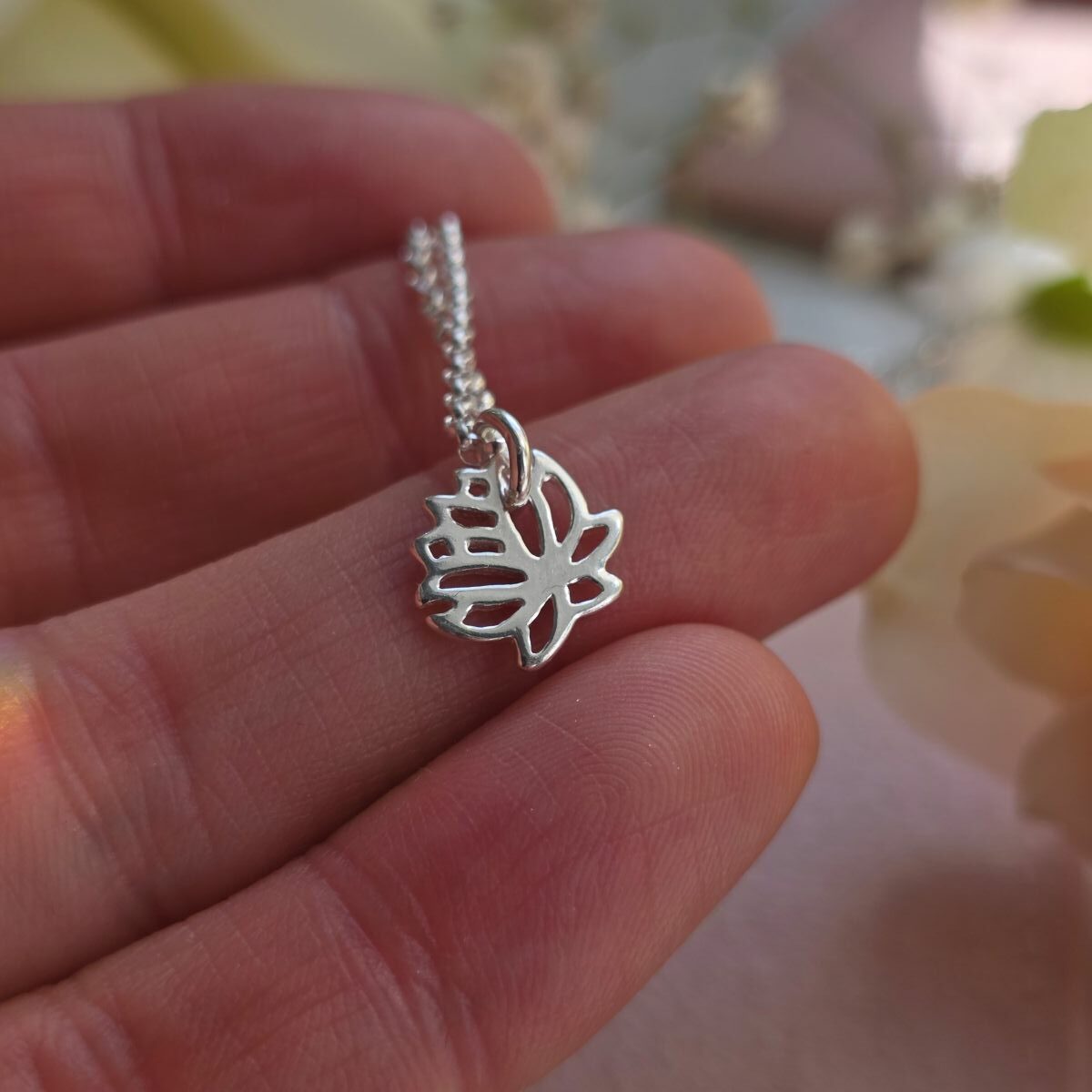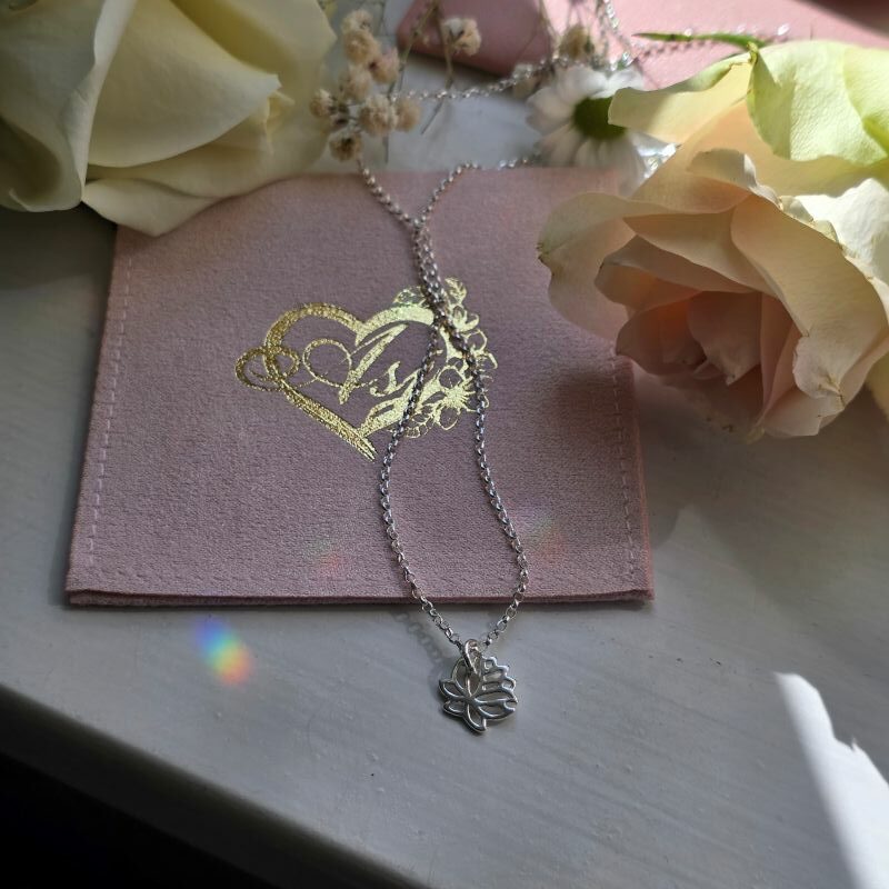 Elegant, symbolic and effortlessly wearable, this Mini Lotus Flower Necklace is a delicate reminder of strength and growth. Measuring approximately 1.5cm in size, the finely cut lotus design is crafted in sterling silver, creating a light and graceful piece that sits beautifully against the skin. The lotus flower is rich in meaning, known for rising through muddy waters to bloom into something pure and beautiful. It represents resilience, new beginnings and personal growth — a quiet reminder that even through challenging times, you can emerge stronger and renewed. The charm suspends from an open link sterling silver chain, available in your choice of length, allowing you to style it exactly how you like.