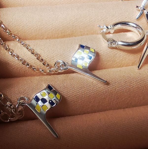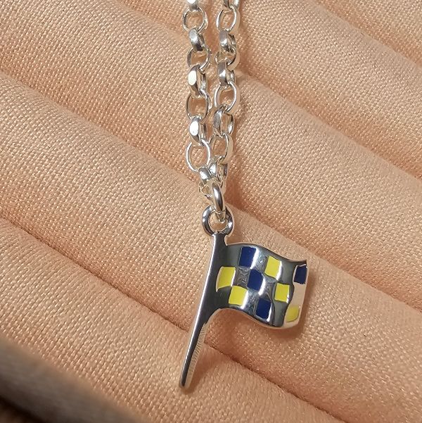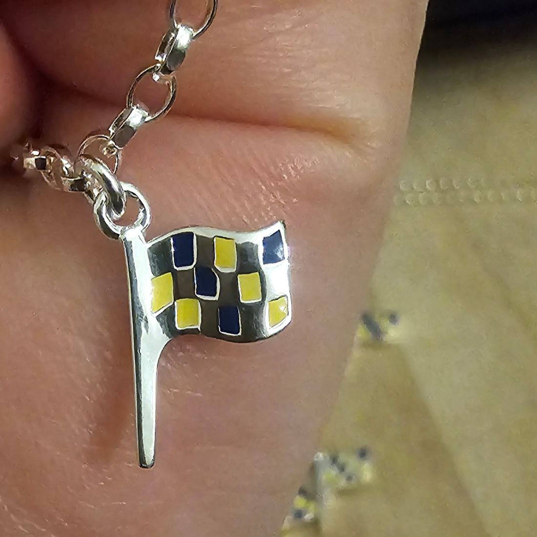 Proudly presenting this spectacular Rossi VR46 themed special edition creation of our best selling teeny tiny chequered flag bracelet, perfectly made in sterling silver and blue and yellow enamel Add some extra sparkle to your wrist with this amazing bracelet. This dinky charm measures just 1.5cm in size from top to bottom, and is even waved like a real flag blowing in the wind! Suspending from a sterling silver open link bracelet