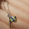 Mini Rossi VR46 Inspired Enamel Flag Necklace in Sterling Silver