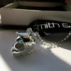 This helmet measures approximately 1.5cm’s in size and suspends from a sterling silver chain of your choice in length and style. It will be delivered in packaging with added biodegradable sparkles. Suzi wears hers on an 18 inch chain, and the model pictured wears hers on a 16 inch chain.