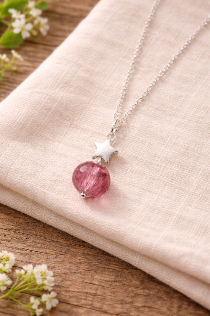 Nina Disco Stars Necklace in Sterling Silver- Dusky Pink Edition