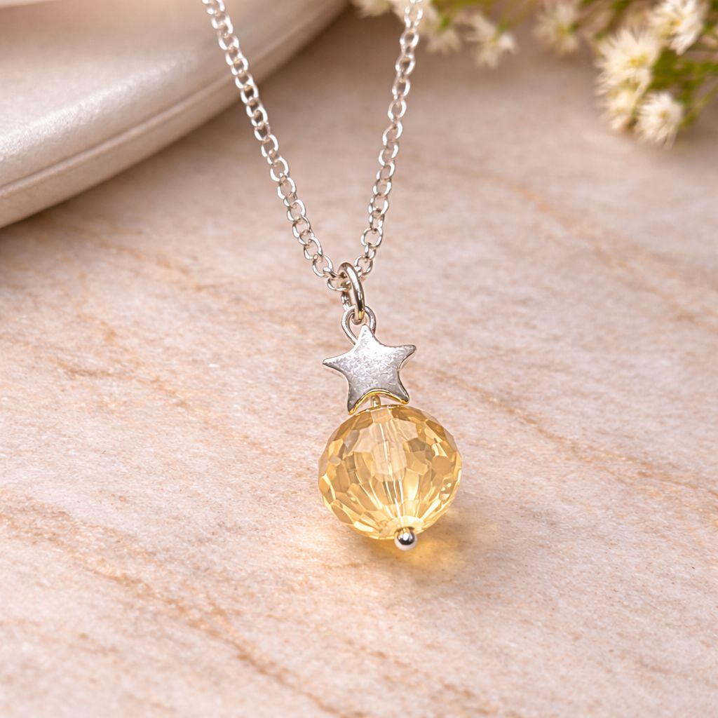 Nina Disco Stars Necklace in Sterling Silver- Sunny Yellow Edition