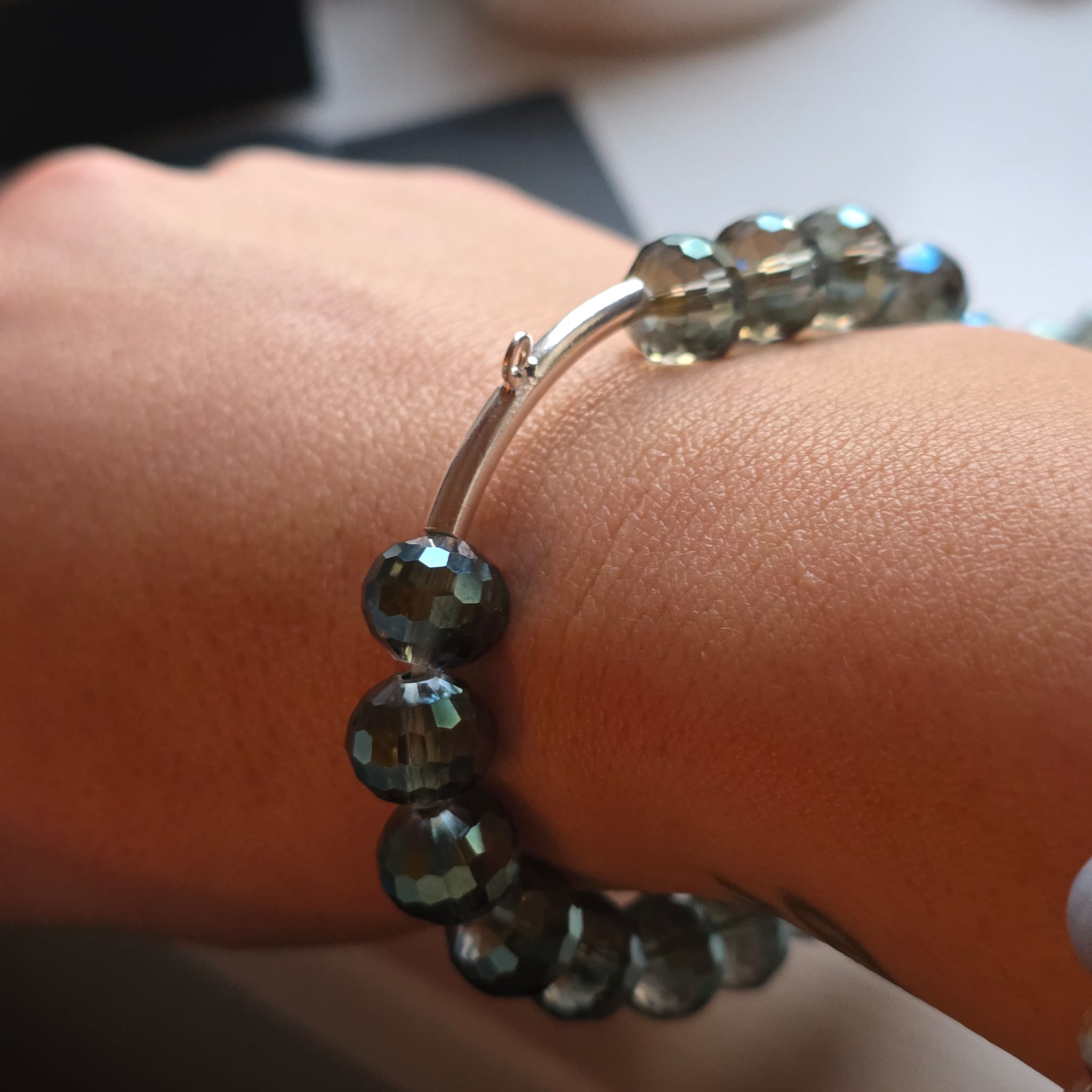 This amazing bracelet is the first of its kind and features those amazing Nina Disco Stars faceted glass beads that the world went crazy for, but this time- it’s stretchy and has no clasps- and it’s a charm carrier bracelet! Thanks to the clever sterling silver noodle bead which features on this bracelet, you can swap and change any of your favourite charms to suit your mood, outfit or where you are going! Size 1 is suitable for those who wear a 7 – 8 inch bracelet and size 2 is suitable for those who wear an 8 to 8.5 inch bracelet. This is a made to order item so please allow approximately 10 days for it to be made for you. Look how sparkly it is!