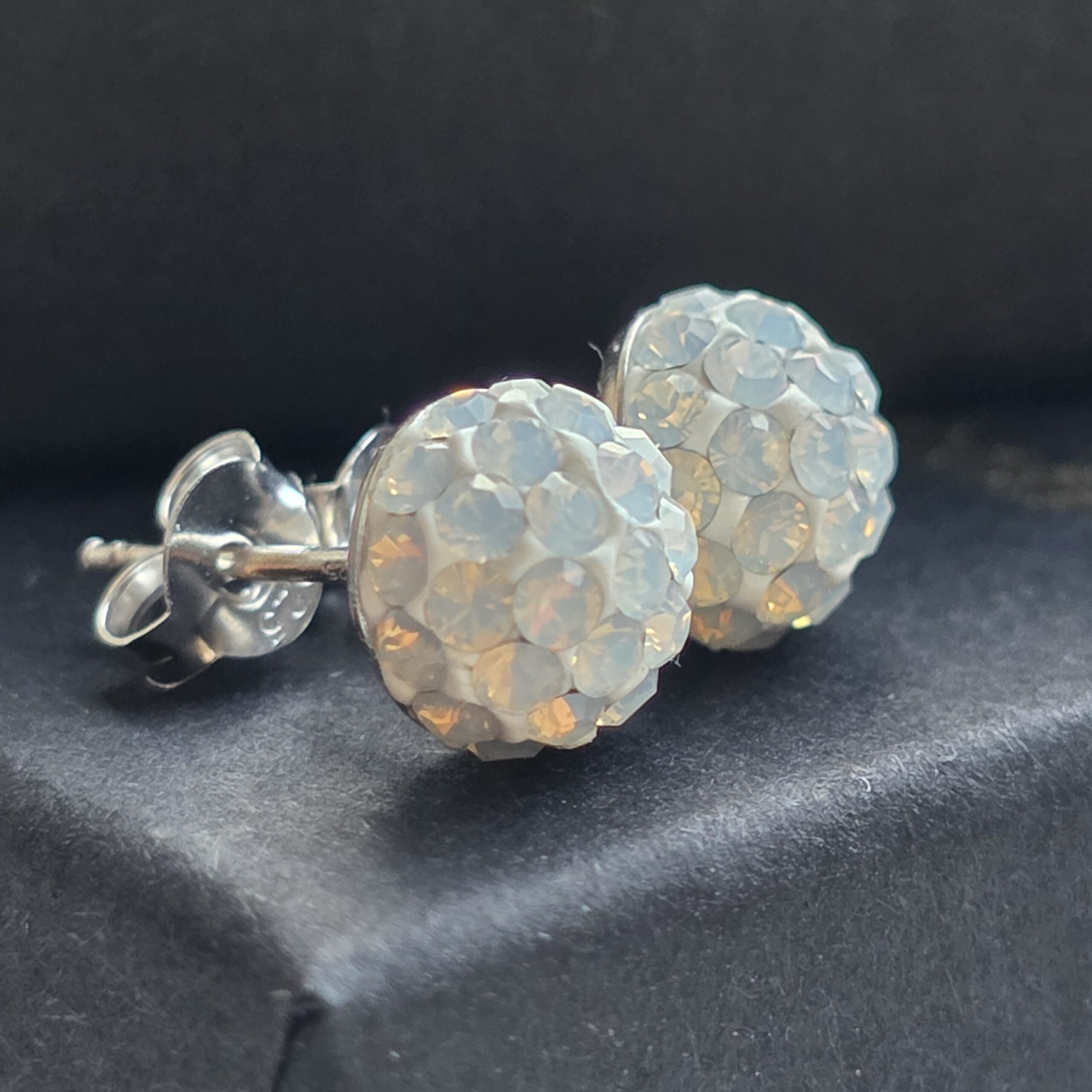 Introducing our Glitter Bug Studs, a sparkling pair of statement earrings designed to add a touch of glamour to any look. Each stud measures approximately 8mm, making them the perfect size for everyday wear while still catching the light beautifully. The lovely opal shine colour of the crystals creates a rich, luxurious finish that feels especially suited to Valentines. Whether worn alone for a subtle shimmer or paired with your favourite jewellery, these studs are a simple yet striking addition to your collection