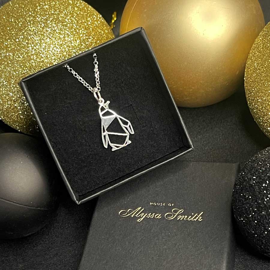Say hello to our beautiful origami penguin, cut with the most striking angles and back for Christmas 2025! Perfectly made in sterling, once you have picked your perfect chain length, we will package it up and send your new penguin on its way to be enjoyed year after year. A truly adorable little gift or essential purchase!