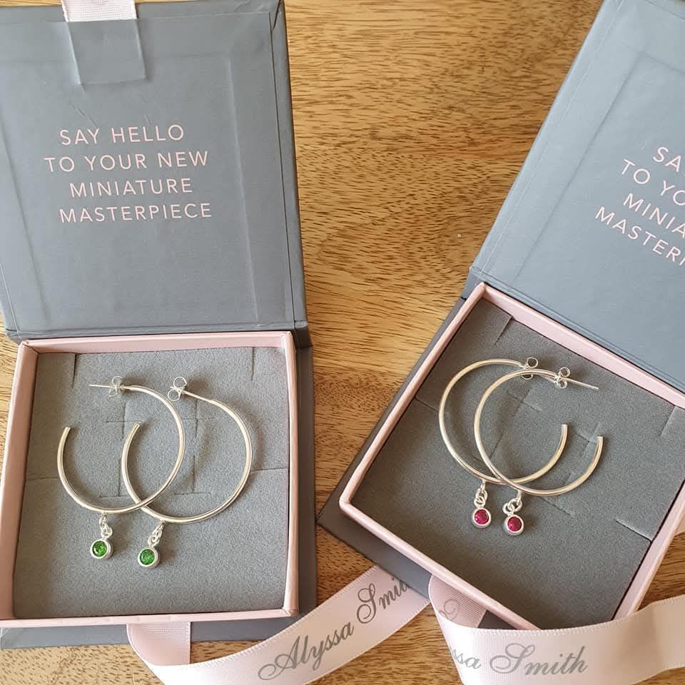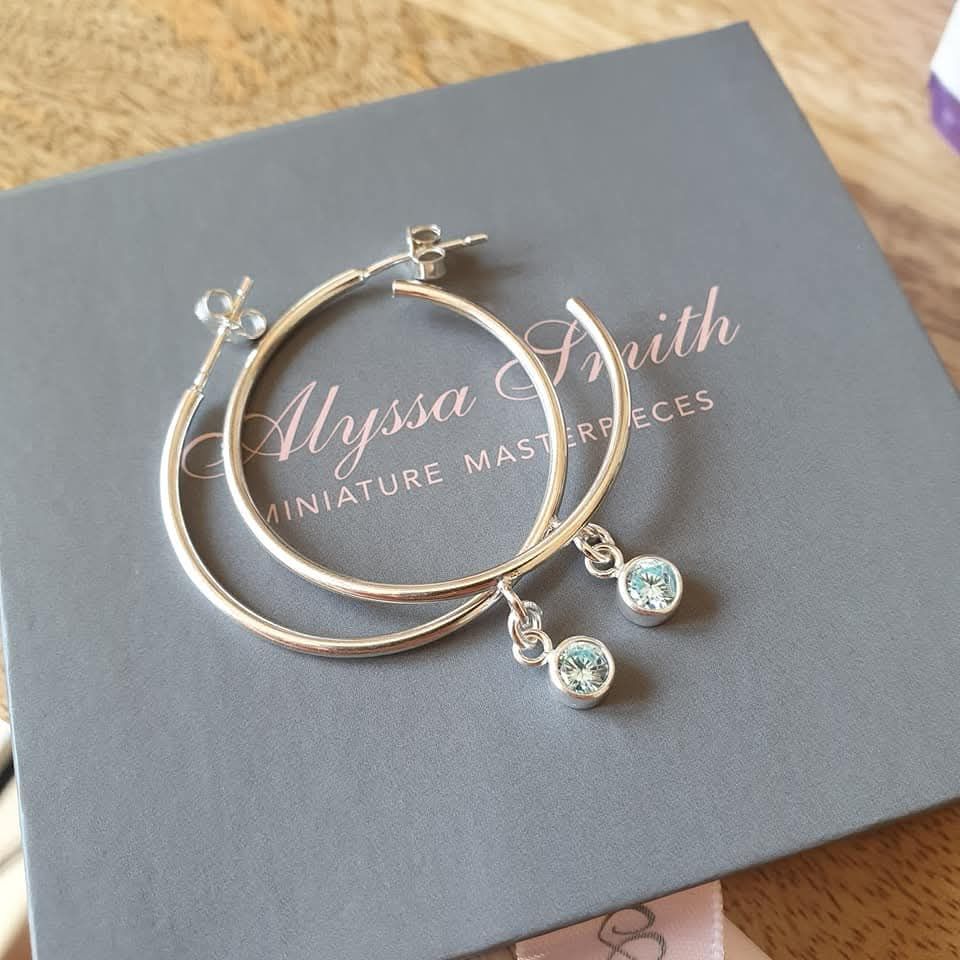 They measure 3cm in diameter, and are crafted to be lightweight so they do not weigh your ears down like some large hoops do. They feature dangling sterling silver and cubic zircona birthstones- pick by month, or just because you want to accessorise your outfits with your favourite colour! These are the perfect treat to yourself, or gift to a friend or loved one- we all know someone who just LOVES their hoops! These beautiful earrings will come packaged in Alyssa Smith branded packaging with added, biodegradable sparkles- how cute!