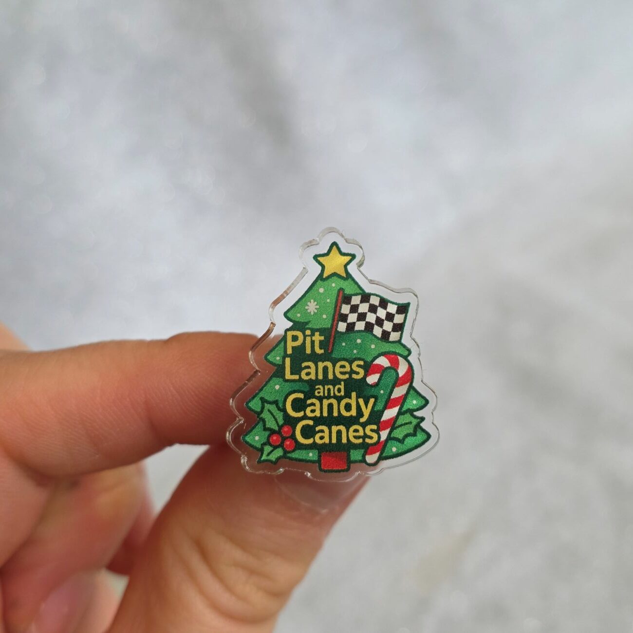 LIMITED TO 5 PER CUSTOMER TO ENSURE EVERYONE HAS A CHANCE TO GET ONE. Our amazing festive Pit Lanes Christmas tree pin badge is cleverly made from 100% recycled acrylic (which wouldn’t have been given a new life if it wasn’t for us turning it into this!) is perfect for wearing on your fave Christmas jumpers (and evening wear!) all season long! Entirely designed by Alyssa, this pin features some pretty exquisite detailing. Run, don’t walk, this one won’t stick around for long!