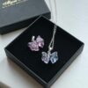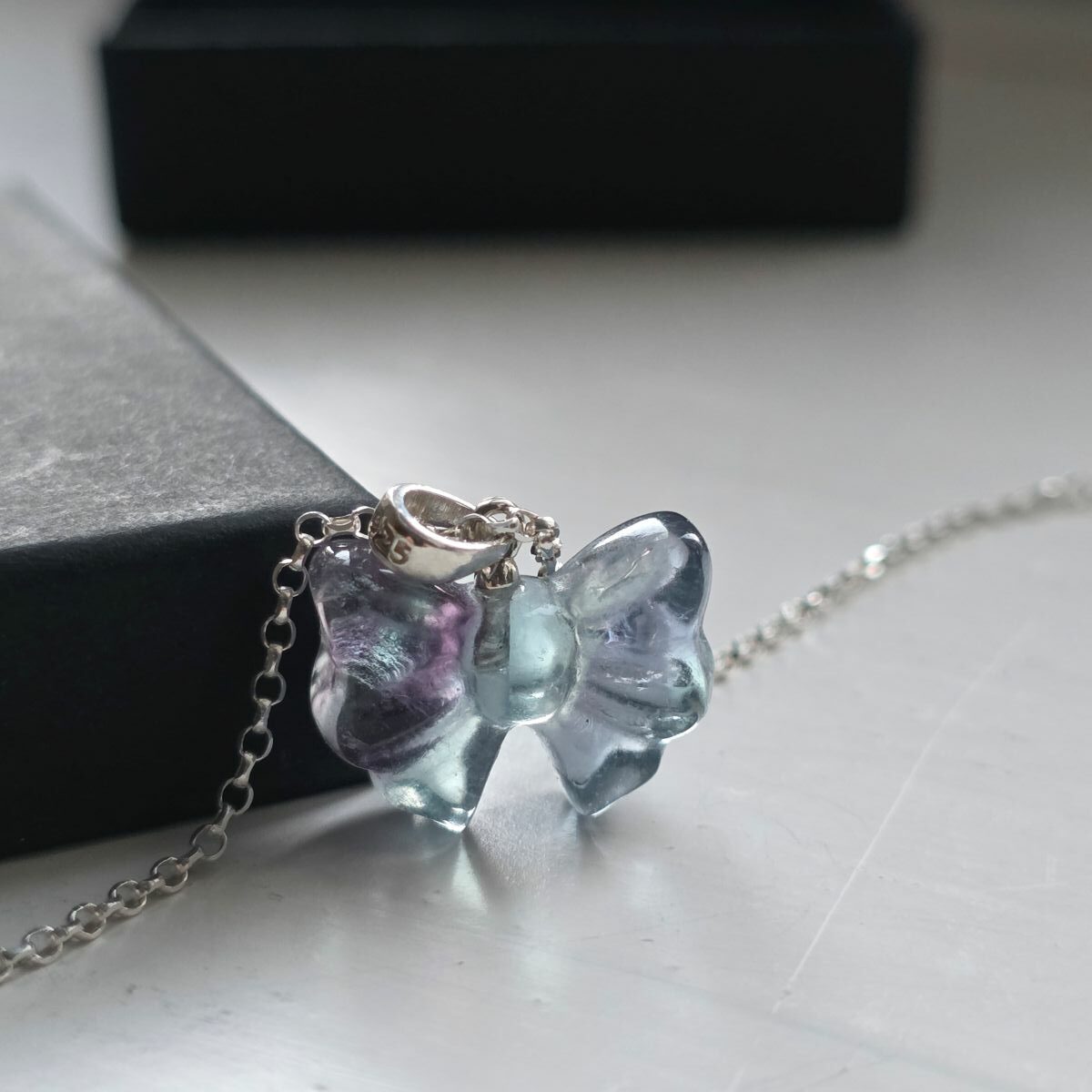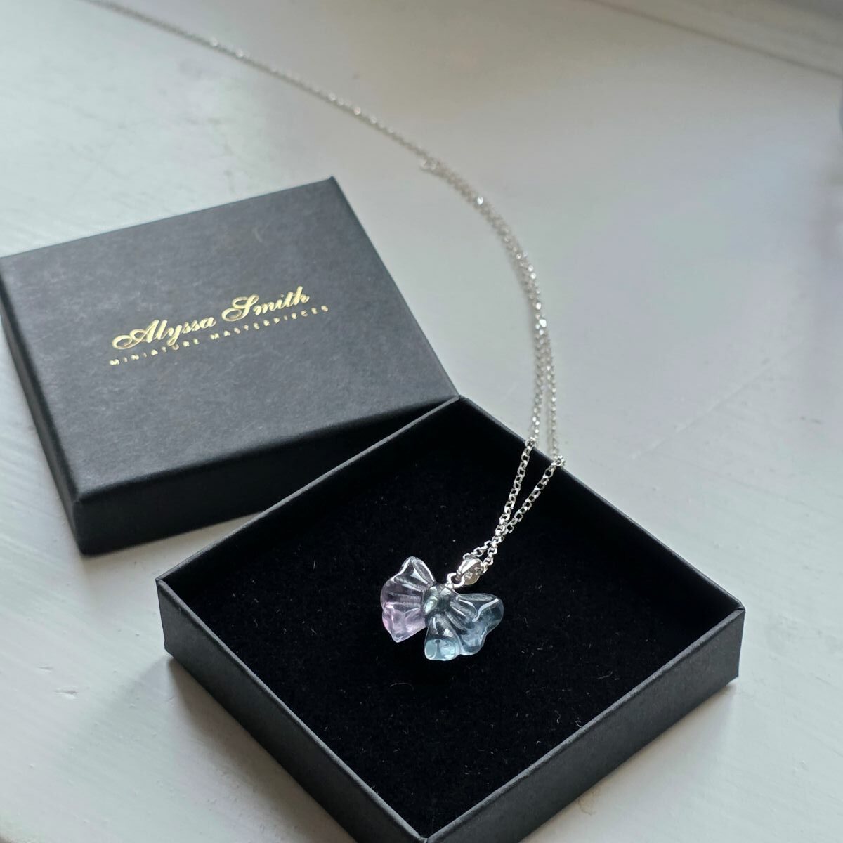 Rainbow Fluorite Bow Necklace in Sterling Silver