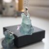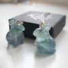 This rainbow fluorite rabbit stands approximately 2cm in height and is beautifully carved from polished natural fluorite. No two pieces are ever the same, with each rabbit displaying its own unique blend of colours, from soft greens and gentle purples to subtle hints of blue and clear tones, making every piece truly individual. Rabbits are long associated with good luck, abundance and new beginnings, symbolising prosperity, protection and positive forward momentum. Rainbow fluorite is believed to encourage clarity of thought, emotional balance and calm focus, making this a meaningful talisman to wear close each day. The rabbit suspends elegantly from a sterling silver open-link chain, available in your choice of length.