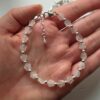 The Rose Quartz Happiness Gemstone Flower Bracelet in Sterling Silver is a delicate and meaningful piece designed to celebrate love, warmth and connection. Hand-strung with softly carved rose quartz flower gemstones and polished sterling silver beads, this bracelet brings together gentle pink tones and classic silver for an elegant, timeless look that can be worn every day. Rose Quartz is often known as the stone of love, believed to represent compassion, happiness and emotional warmth, making this piece a thoughtful gift for Mother’s Day. Finished with a sterling silver clasp and extender chain, the bracelet measures 7–8 inches, allowing for a comfortable and adjustable fit.