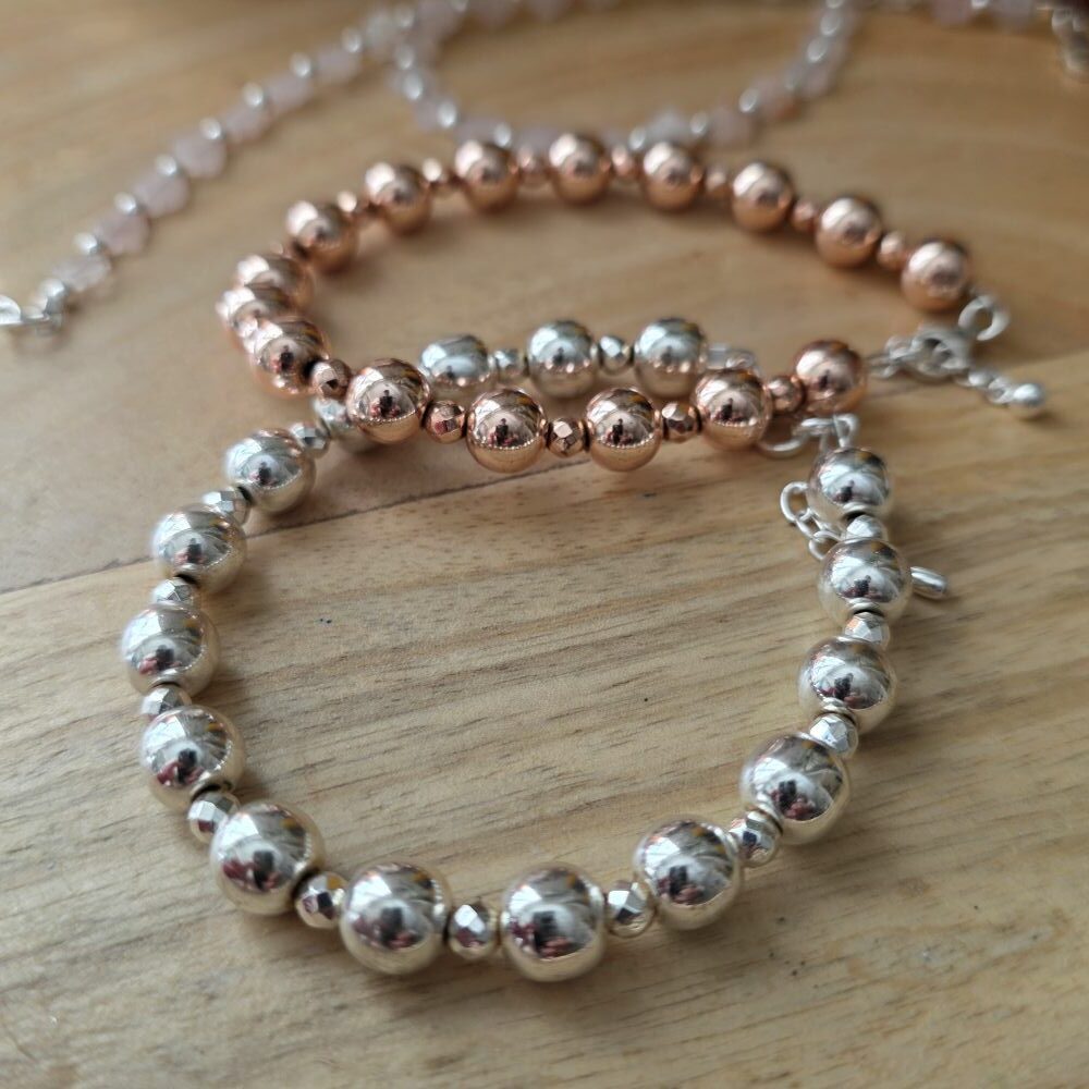 This amazing Rosy Posy bracelet is now available in both rose gold and silver hematine beads… Just wow!