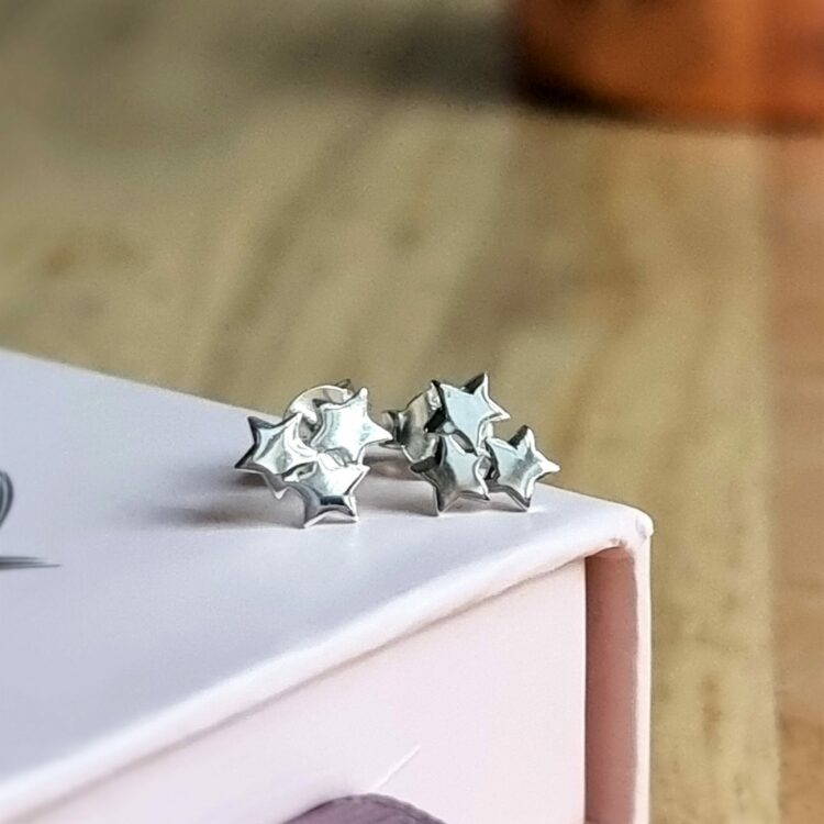 These stunning little cluster star studs are perfectly made in sterling silver and measure 7mm in total size. Great for wearing when you have multiple piercings… or just the one. We will deliver these to you in our lovely gift box with a dash of biodegradable sparkles for the finishing touch when the box is first opened.