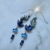 Sterling Silver Statement Enamel Peacock Drop Earrings with Blue Sapphire Beads- One of A Kind