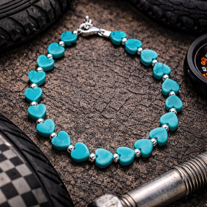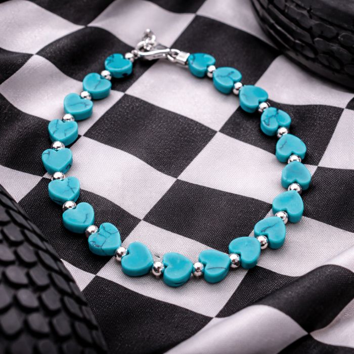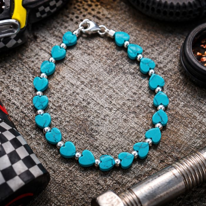 Available for 7 days only (or until sold out early!) — introducing The Mercedes Heartbeat Bracelet, a stunning limited-edition design inspired by the passion, speed and unmistakable teal of the team. This striking bracelet features rich blue agate heart beads, each one unique with natural marbling and texture, perfectly paired with shining sterling silver beads for that classic motorsport-meets-luxury feel. Finished with a sterling silver extension chain, this piece measures 7 to just over 8 inches in length for the perfect adjustable fit.