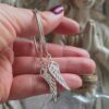 These very special hoop earrings were design and created by Alyssa to commemorate her beautiful mummy who gained her wings. Please wear yours and know your loved ones are always close by watching over you, even when we cannot feel it. These lovely large sterling silver hoops measure 3cm in diameter, and feature a treasured angel wing droppers which measure a further 3cm in length. Made to be lightweight and designed for comfort and all day wear