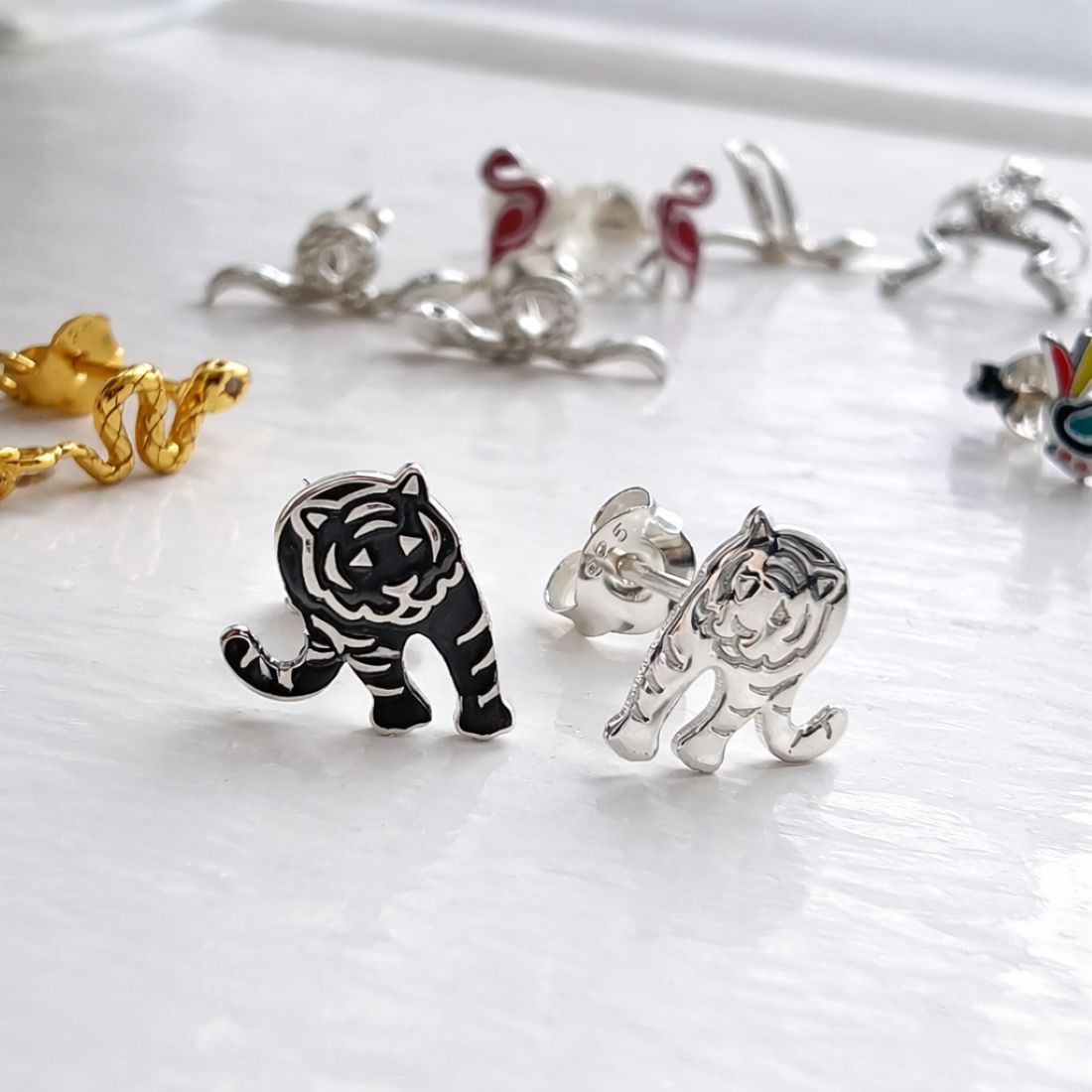 Tiger Studs in Sterling Silver