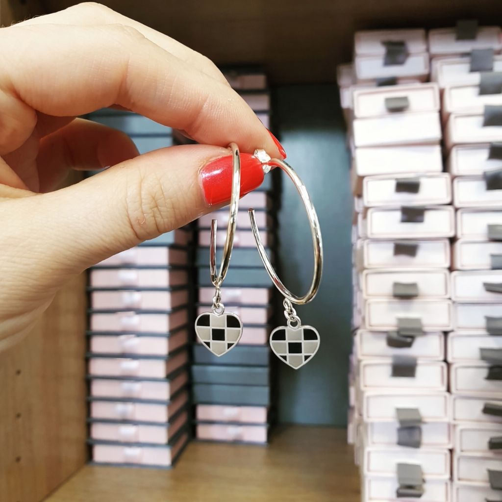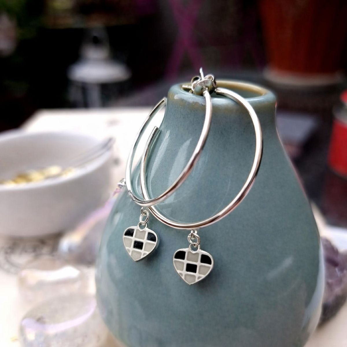 These gorgeous chequered heart hoop earrings are both statement, and delicate at the same time! Statement in size, but these beautiful large hoops won’t weigh your ears down, and look absolutely stunning with a colourful outfit, and hair up do’s, or short hair!