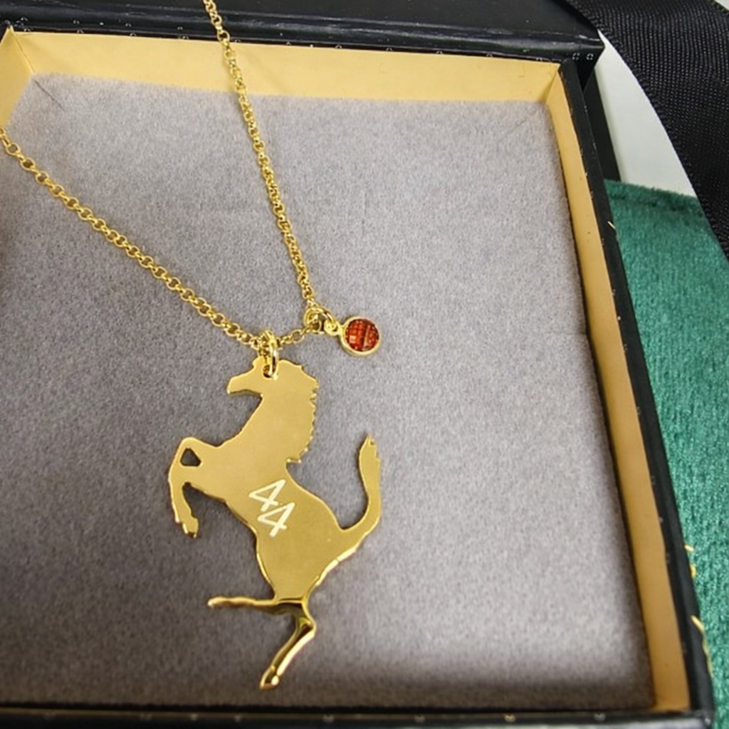 Ferrari Inspired Galloping Horse Lewis Hamilton 44 Necklace