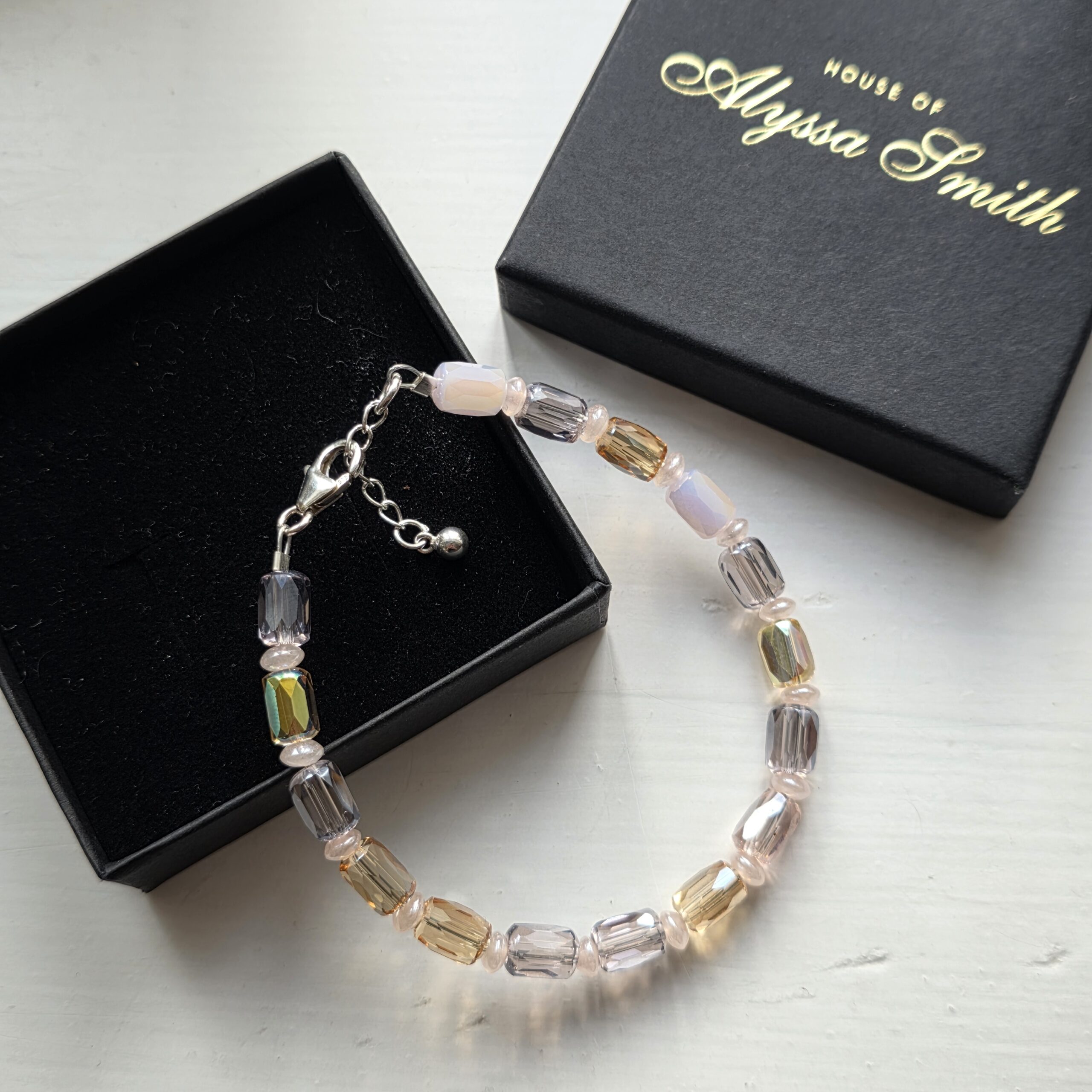 Whether worn alone for a minimal, refined look or layered with your favourite pieces, this bracelet adds a soft, polished touch of colour that feels both timeless and uplifting.