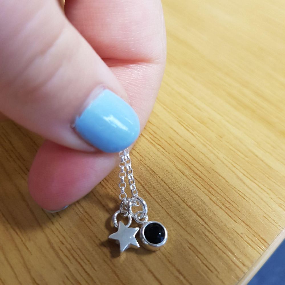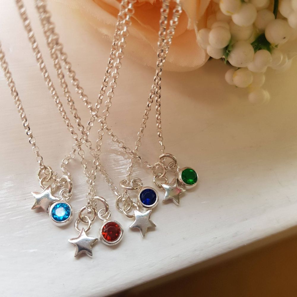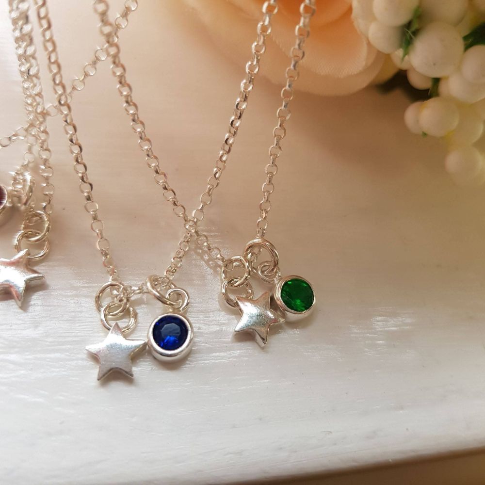 The star its self measures 7mm in size and is polished super shiny. Suspending from a lovely silver glittering chain, you can even add a sparkling birthstone to this lovely necklace to make it more personal. Up to 6 stars can be added per necklace for the perfect sentimental gift. If you want to add more than 1 birthstone, please do get in touch