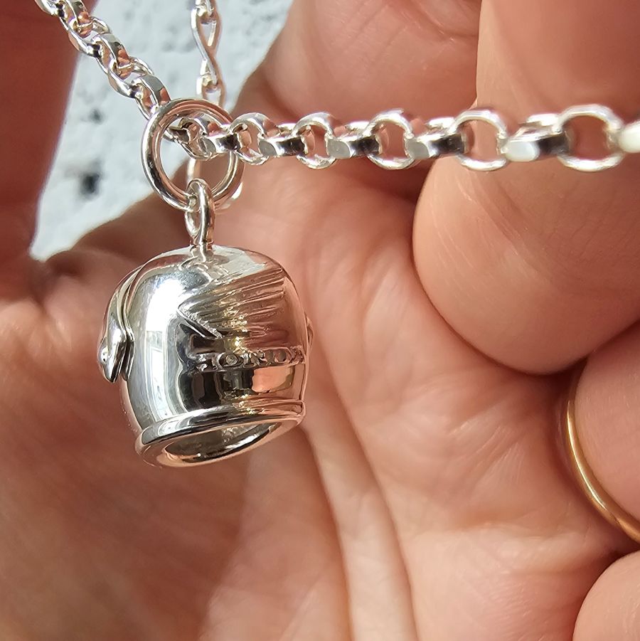 This iconic and instantly recognisable sterling silver helmet has been made to absolute perfection and even features a moving visor which opens and closes! Perfectly crafted in solid sterling silver, it proudly boasts the Honda logo which is embossed on the surface of the helmet. This bracelet measures approximately 1.5cm’s in size and this amazing bracelet will come on a 7inch open link chain with a clever extension chain for this bracelet so it can be worn anywhere from 7 inches in length at the shortest, up to 8 inches in length at the longest. Please be aware this product can only be shipped within Europe due to licensing agreements.