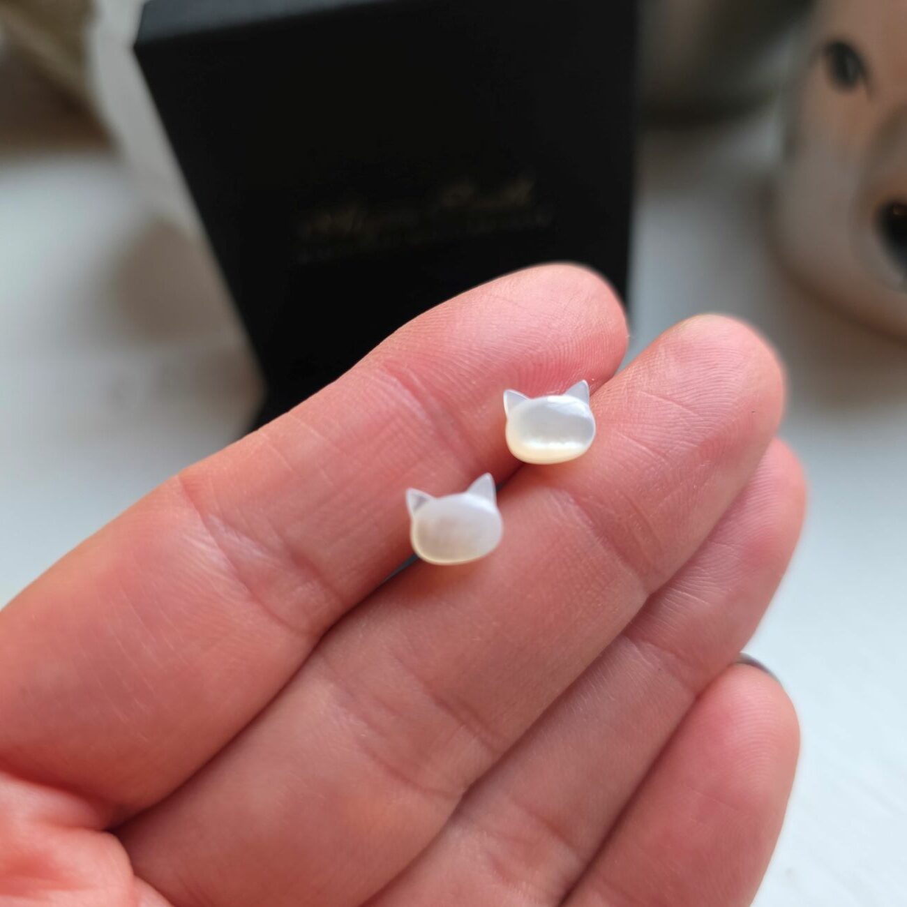 The White Mother of Pearl Cat Stud Earrings are a striking pair crafted with genuine white mother of pearl, cut into smooth cat silhouettes with a polished finish. The surface has a natural colour-shift that transforms in the light, revealing soft shimmering rainbows depending on movement and angle. Set on sturdy sterling silver post with silicone push backs, they offer a secure, comfortable and gentle fit for sensitive ears. The design is bold yet minimalist, allowing the crystals to take full focus while delivering an eye-catching festive statement that remains timeless and wearable.