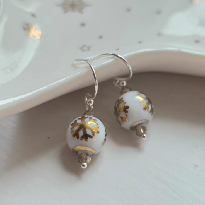 Available only whilst stocks last, or until our Narnia Winter popup shop ends. Welcome to Narnia where everything glitters and glistens in our ice city! These incredible hand painted porcelain beads are the main feature of these stunning drop earrings. It isn’t Christmas without a beautiful pair of dangly earrings! Beautiful matching items available, all Narnia pieces will be delivered inside our blue limited edition pouch unless you select an upgraded box.